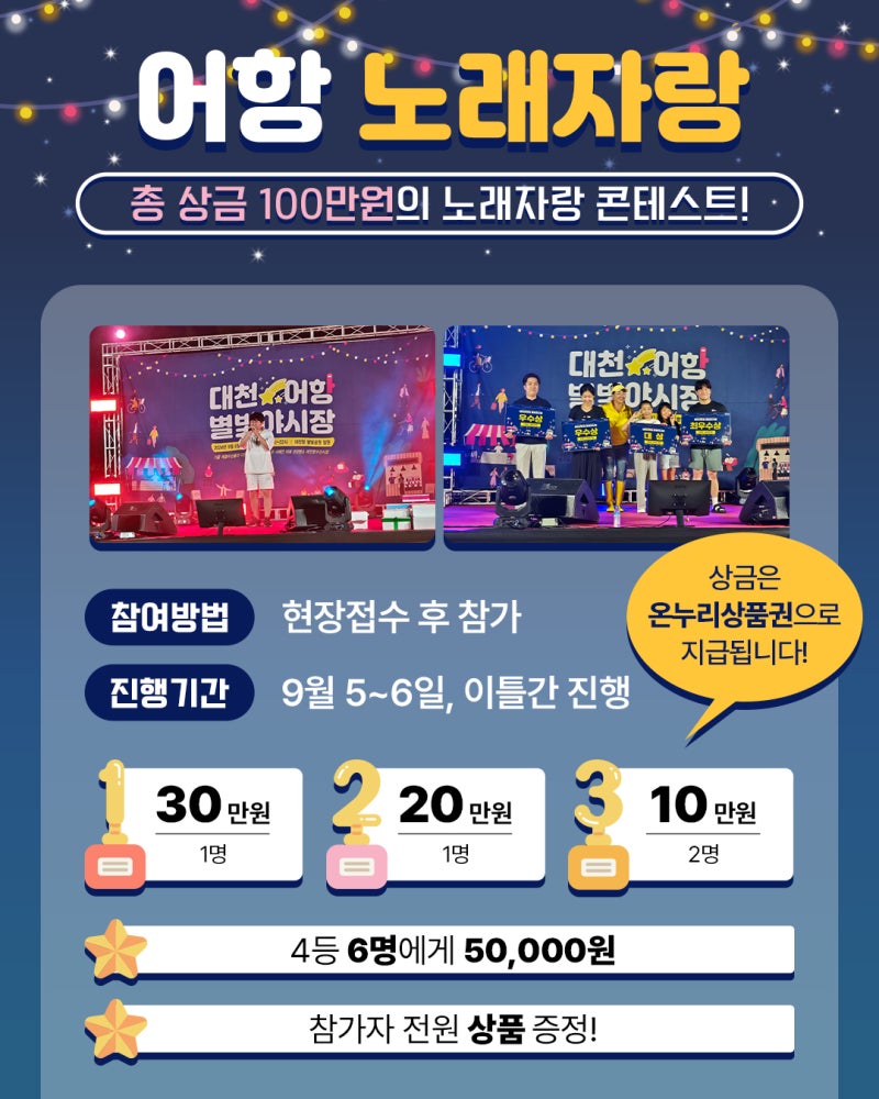9월 첫 주말, 보령 대천항에서 열리는 별빛야시장에서 제철 수산물과 특별한 추억을 만나보시길 추천드립니다!