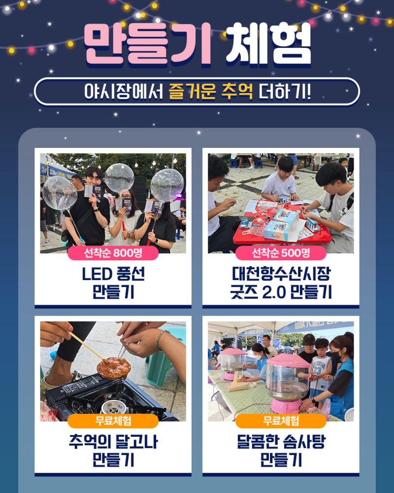 대천어항별빛야시장은 단순한 야시장이 아니라, 먹거리·체험·공연이 모두 어우러진 지역 대표 축제입니다.