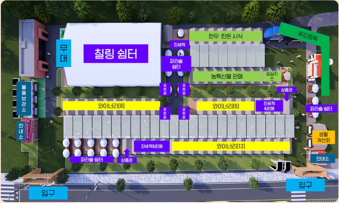 • 개막식 & 한국와인데상 : 9월 12일(금) 14:00, 메인무대