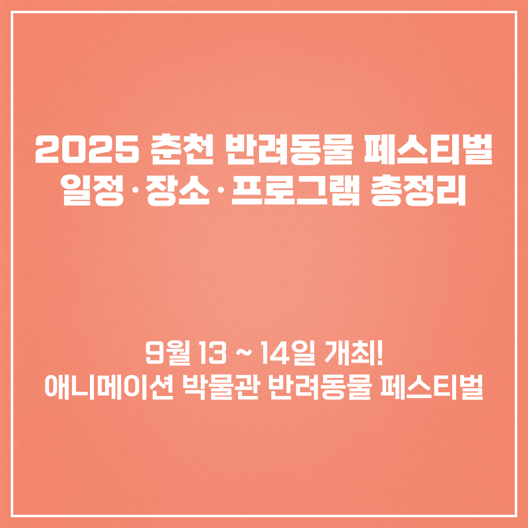 다가오는 9월, 반려동물과 보호자가 함께 즐길 수 있는 특별한 축제가 열립니다. 바로 2025 춘천 반려동물 페스티벌인데요. 반려동물과 함께할 수 있는 다채로운 체험과 프로그램이 준비되어 있어 가족 나들이, 반려인 커뮤니티 모임으로 제격입니다.