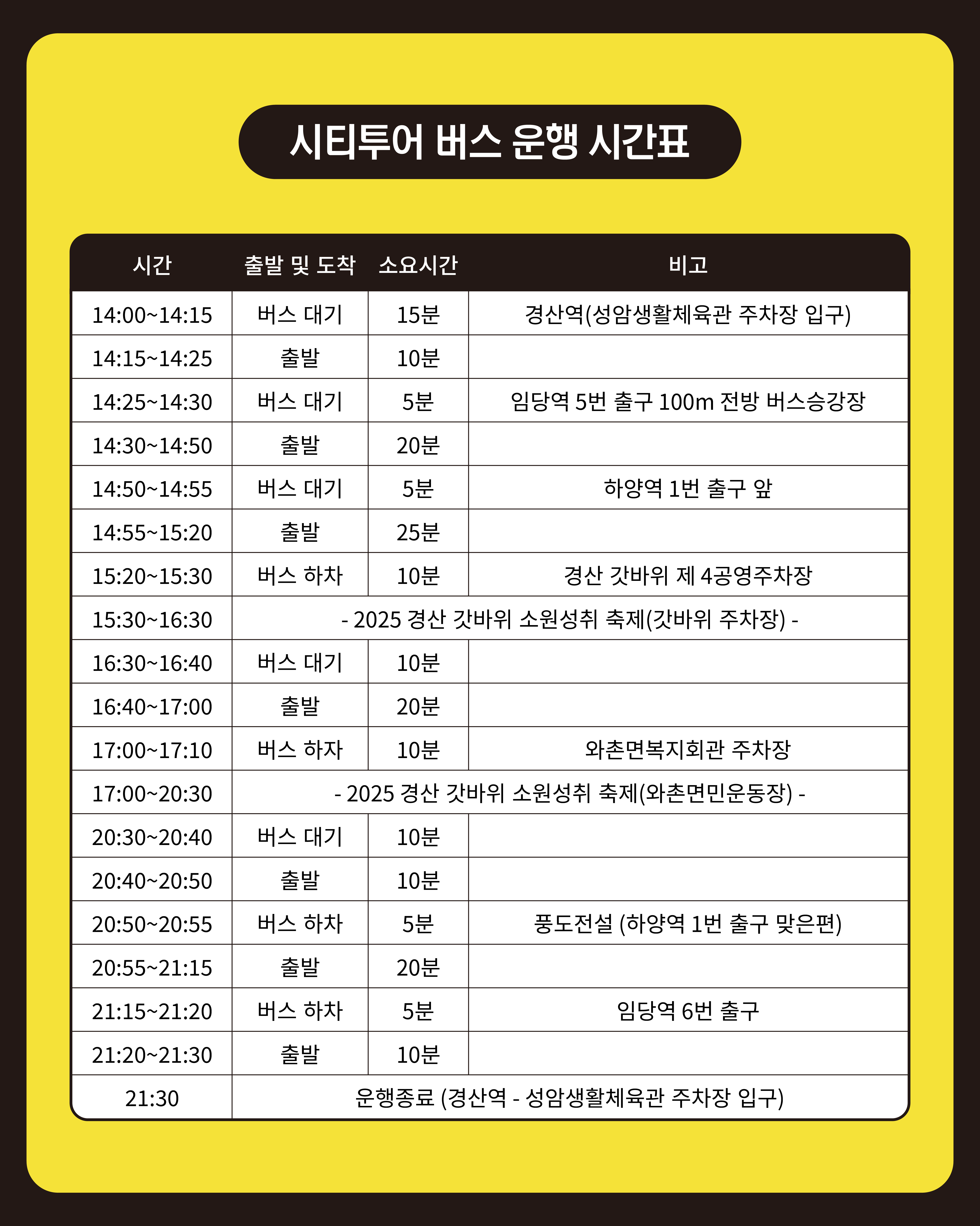 - 경산역·임당역·하양역 ↔ 축제장 주요 노선