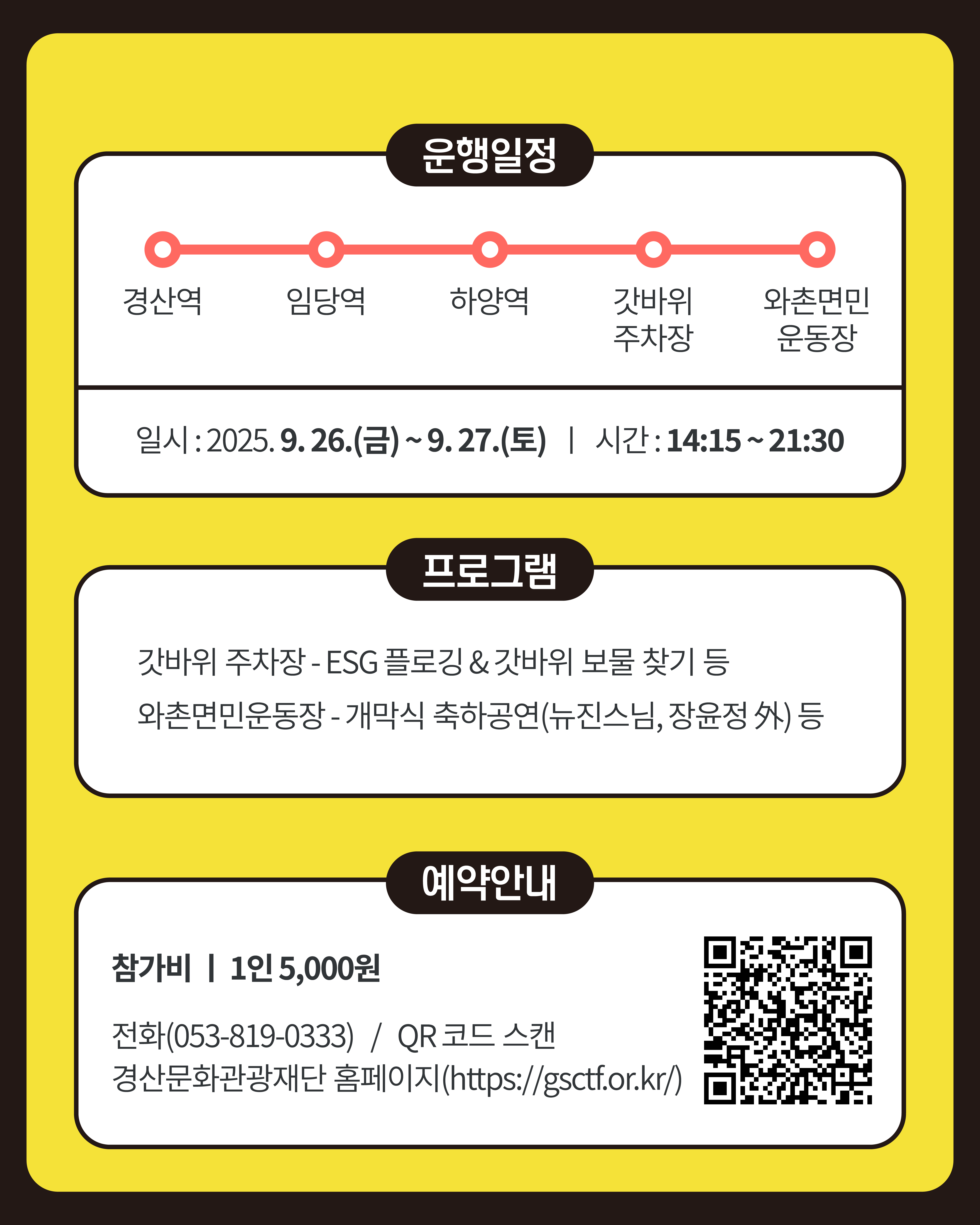 👉 공식 홈페이지: 경산문화관광재단 축제 안내 (사전 예약 프로그램 신청 가능)