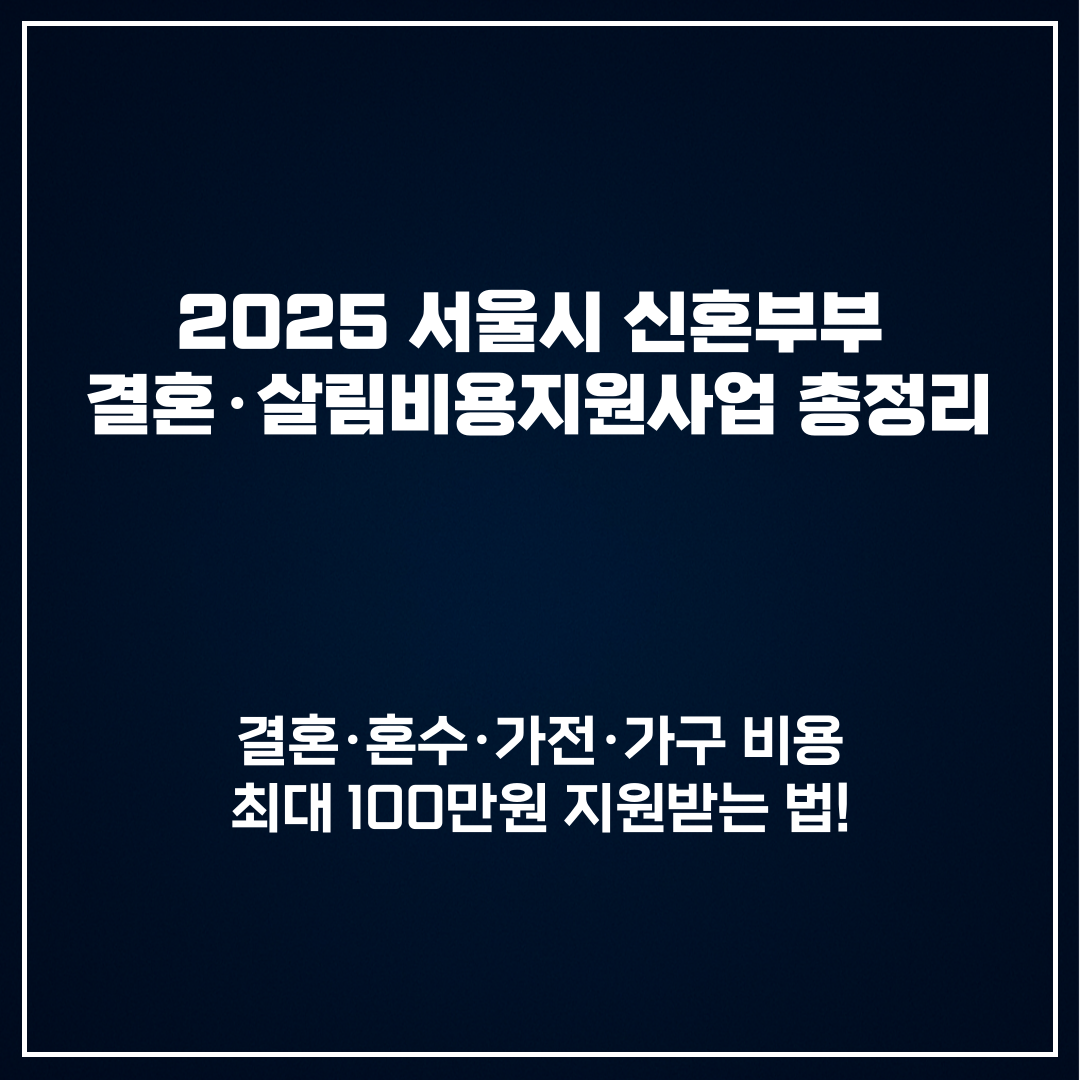 서울시 신혼부부 결혼·살림비용 지원사업 (2025) 총정리