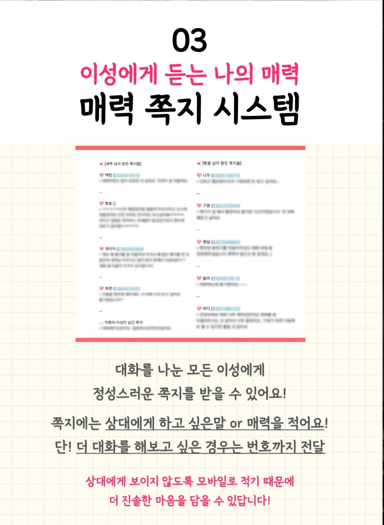 직접 번호를 물어보는 게 아니라, 작성한 쪽지가 모바일로 전달되니 부담이 훨씬 덜했어요!!