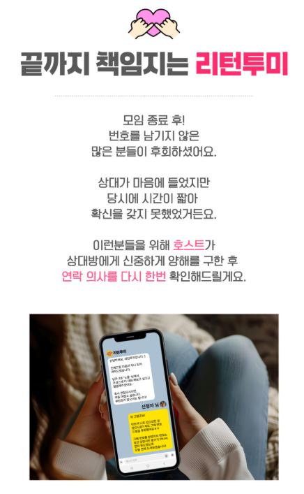 당일에는 용기를 내지 못했더라도, “이 사람과 한 번 더 연락해보고 싶다” 싶을 때 호스트에게 의사를 전달하면 중간에서 연결을 도와줘요:)