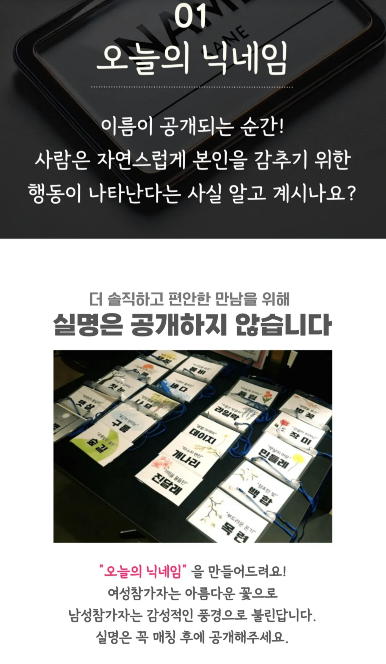 또, 나중에 인연이 이어질 때 자연스럽게 본명을 공유하게 되니까 첫 만남의 부담도 훨씬 덜해서 좋았어요:)
