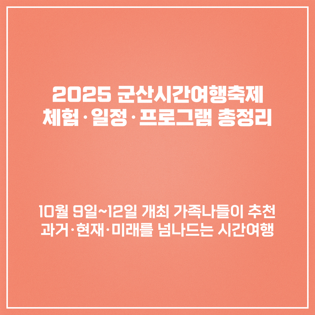 10월의 가을바람과 함께 군산의 역사와 문화를 몸소 느끼며 하루를 보내고 싶으시다면, 2025 군산시간여행축제는 절대 놓쳐서는 안 될 특별한 기회입니다.