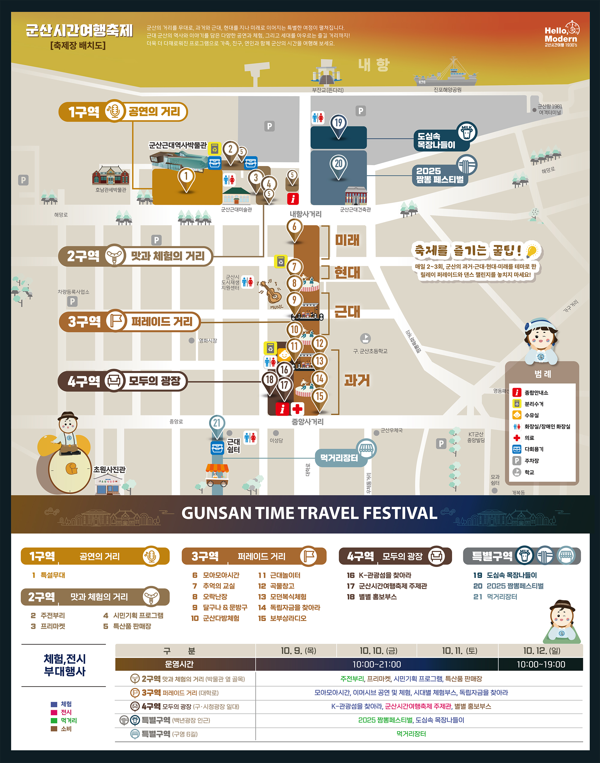 - 시대별 체험부스: 군산 타임슬립 교실, 군산 레트로 의상, 근대생활관, 모던 스타일 살롱 등