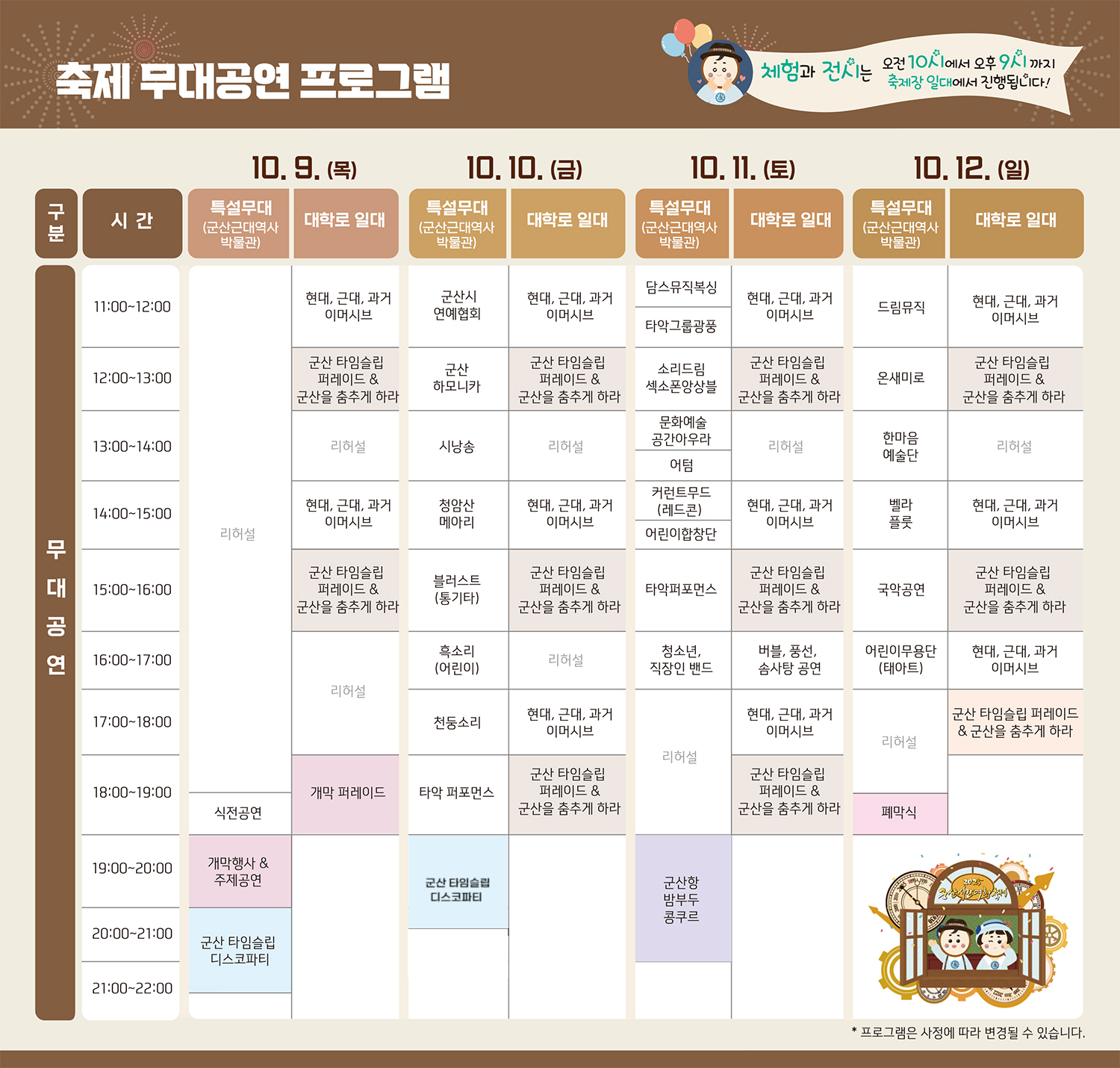 - 10/10(금): 군산 타임슬립 페레이드, EDM 퍼포먼스