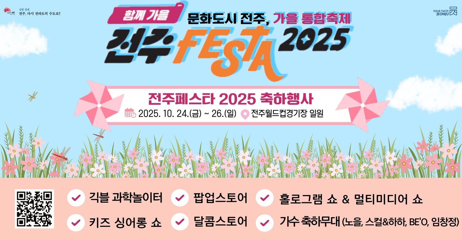 전주의 맛과 멋, 그리고 감성을 모두 느낄 수 있는 이번 페스타는 남녀노소 누구나 즐길 수 있는 프로그램으로 가득해 올가을, 단 하나의 축제를 고른다면 단연 전주페스타 2025가 될 것입니다.