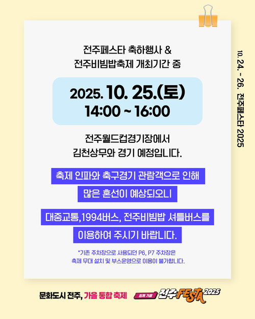 10월 25일(토) 오후 2시~4시, 전주월드컵경기장에서 김천상무 축구경기가 예정되어 있습니다.