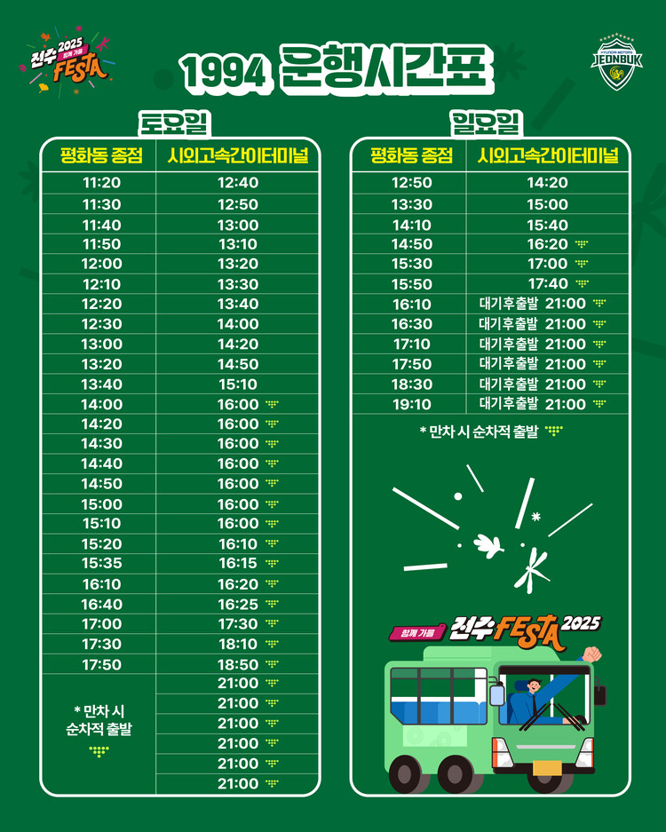 - 셔틀버스는 1994·2025 특별노선 참고