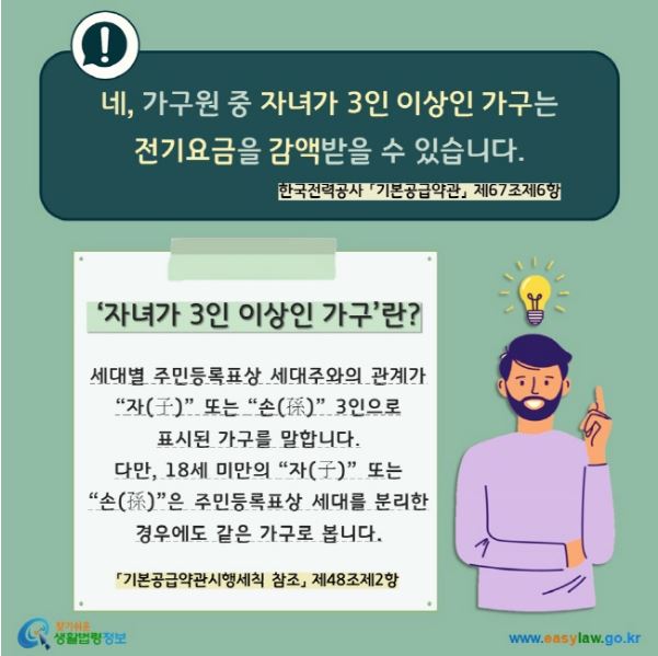 다자녀 가구나 대가족이라면 한전에서 제공하는