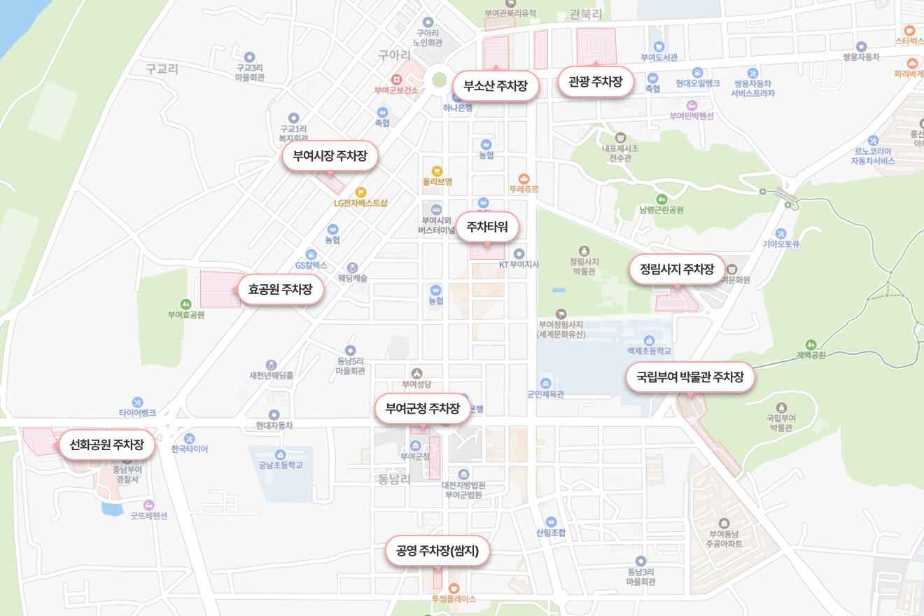 - 군수리 주차장 / 서문 주차장 / 선화공원 주차장 등