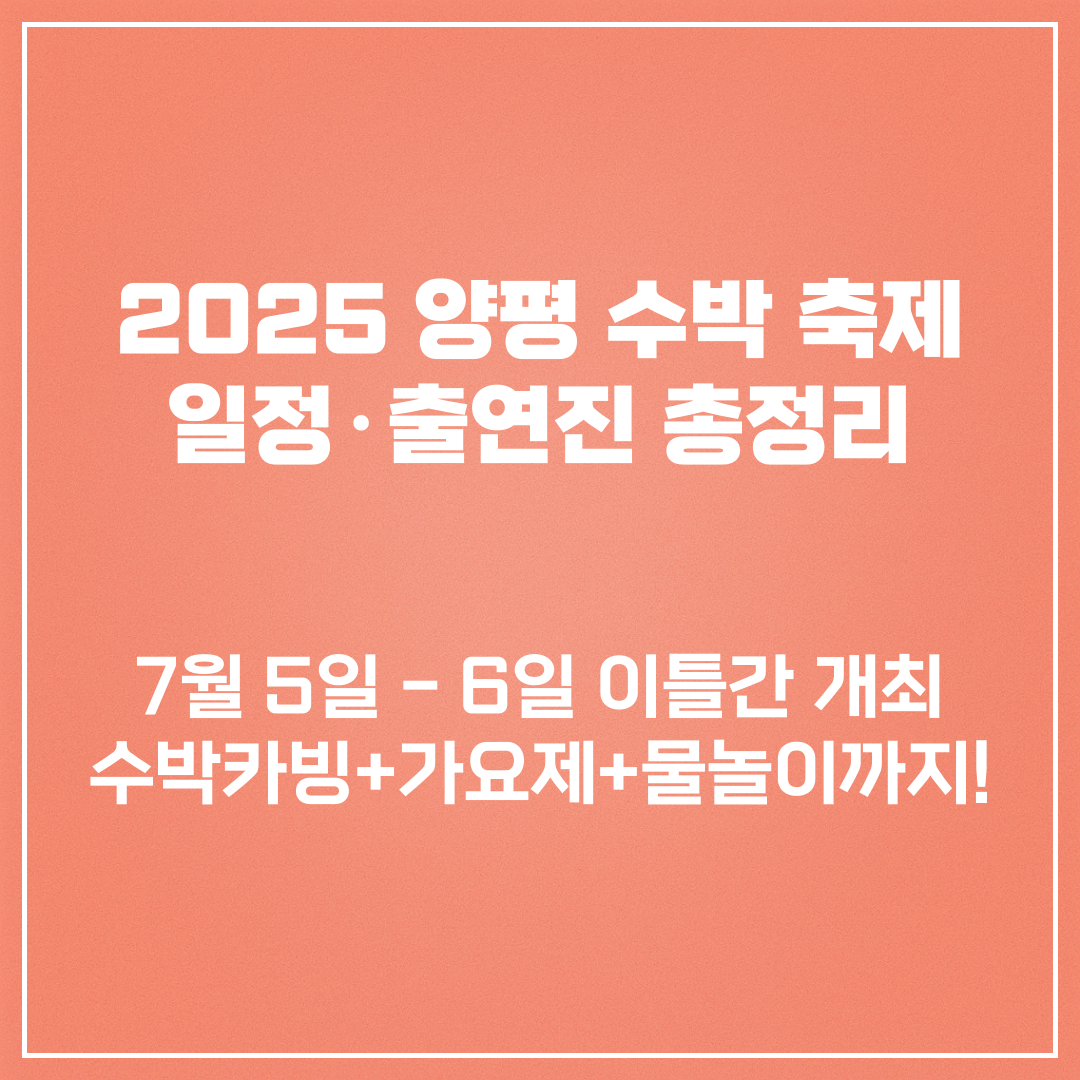경기도 양평에서 열리는 2025 양평수박축제가 7월 5일(토)~6일(일) 이틀간 청운면 용두시장 일원에서 개최됩니다.