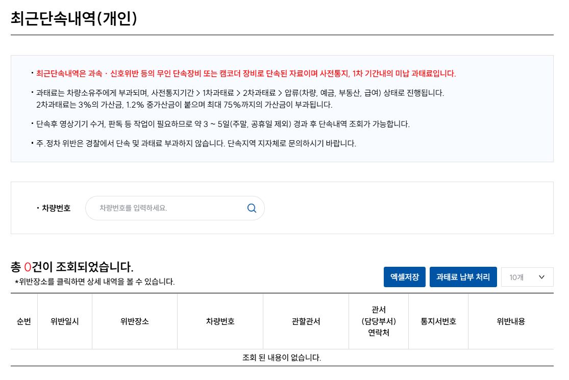 따라서 **단속 직후 1~2일 내엔 ‘조회 결과 없음’**이 나올 수 있습니다.