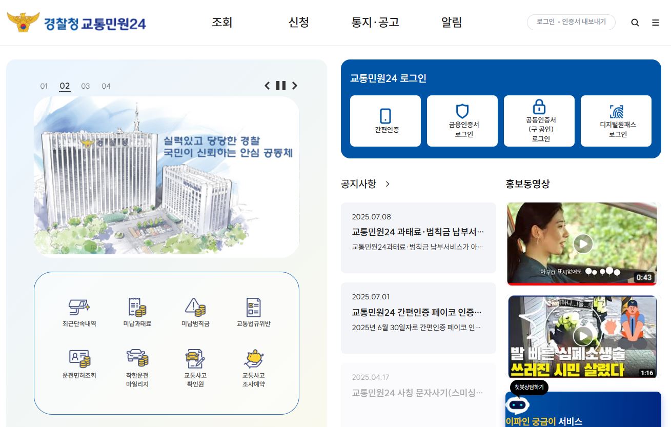 무인단속·신호위반·과속 등 단속 내역을 확인하고 납부까지 가능한 공식 사이트입니다.