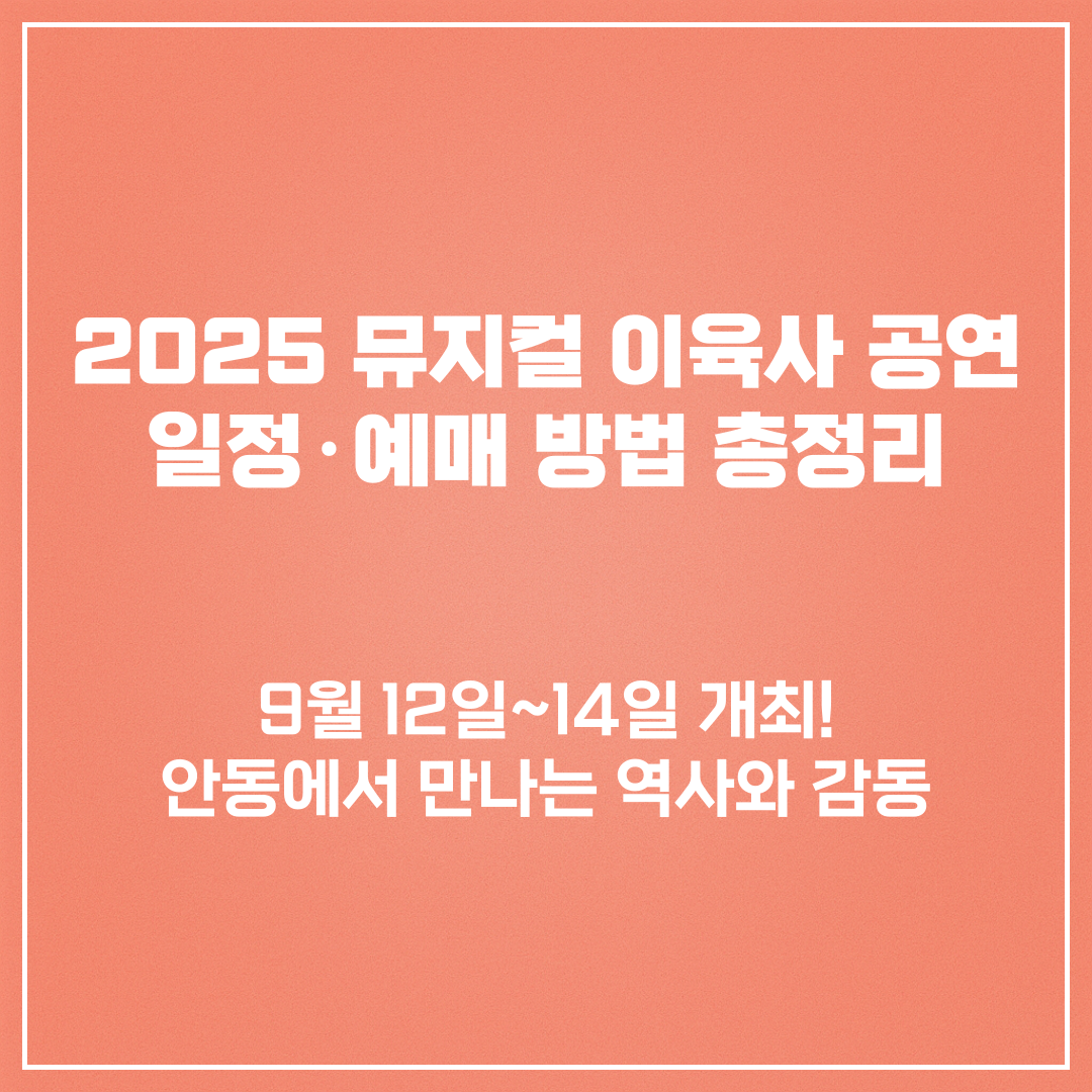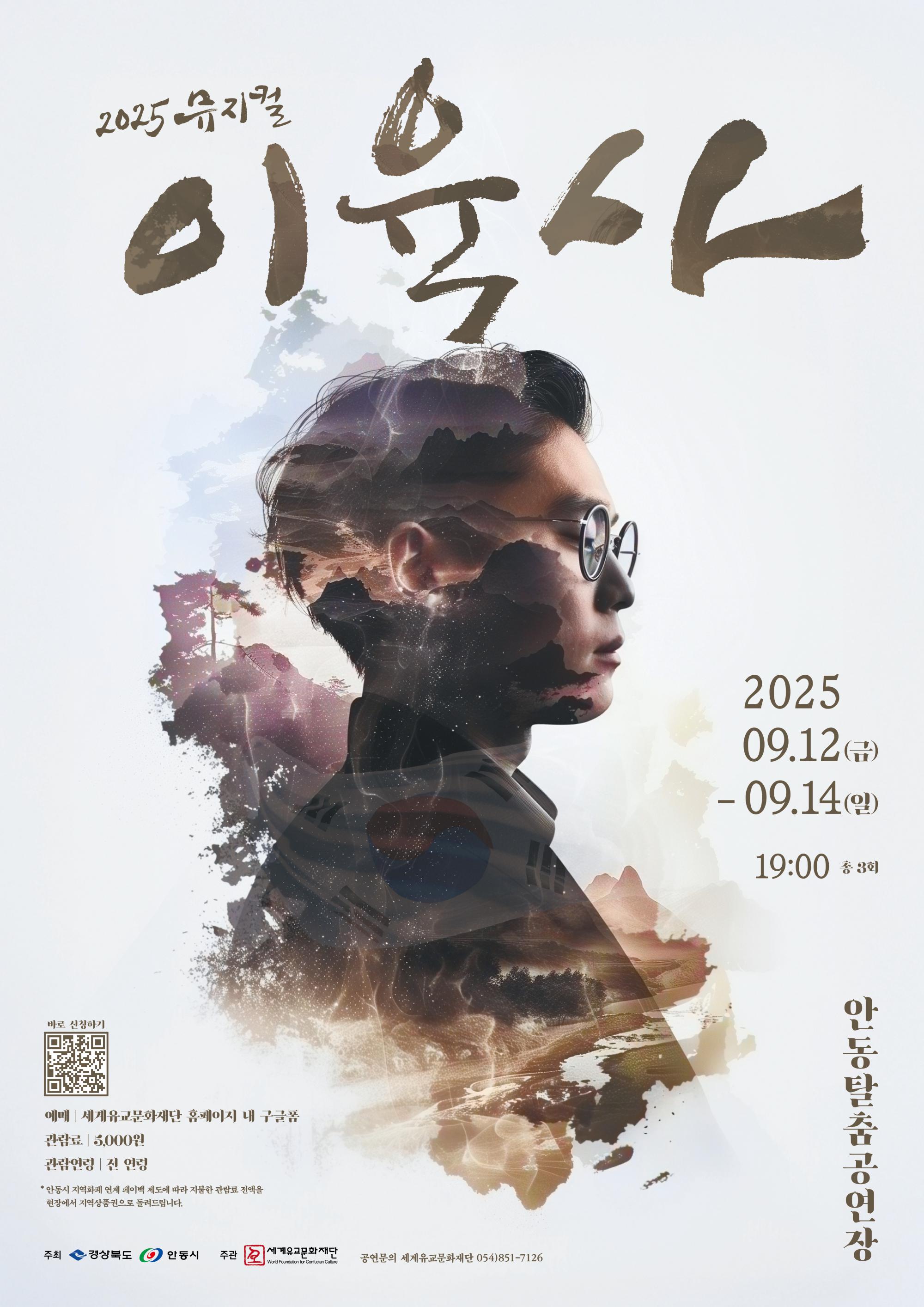 역사와 문학 속 저항 시인 **이육사(李陸史)**의 삶을 무대로 재구성한 **뮤지컬 ‘이육사’**가 2025년 9월 안동에서 공연됩니다. 전체 관람가로, 남녀노소 누구나 함께 감상할 수 있는 작품입니다.