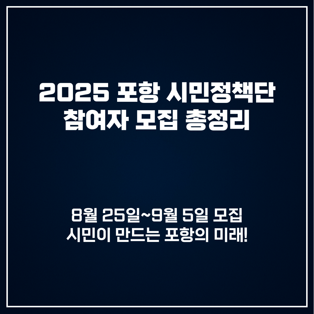2025 포항시민정책단 모집, 시민이 직접 만드는 정책 제안
