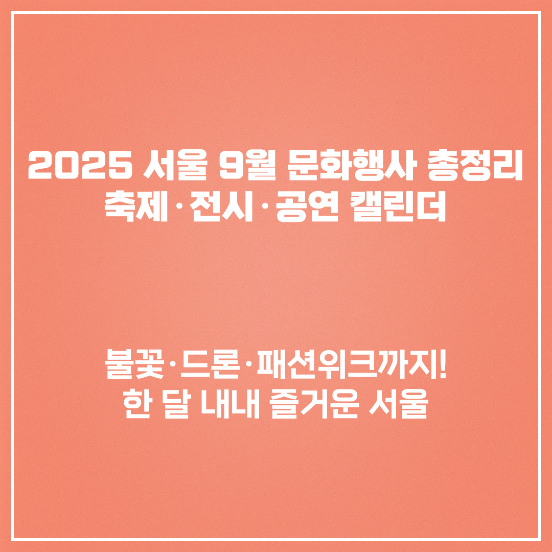 이번 글에서는 서울 9월 문화행사를 일정별·주제별로 정리했습니다.