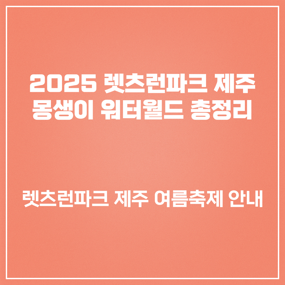 2025 몽생이 워터월드 │ 렛츠런파크 제주 여름 물놀이 축제 안내제주에서 여름 물놀이 축제를 찾고 있다면, 몽생이 워터월드가 좋은 선택이 될 수 있습니다.2025년 7월 26일부터 8월 17일까지, 렛츠런파크 제주에서 열리는 이번 행사는 워터슬라이드, 대형 풀장, 물대포 배틀 등 다양한 프로그램을 운영하며, 가족 단위 및 어린이를 동반한 관광객들에게 적합한 축제로 구성되어 있습니다.1. 행사 개요행사명: 2025 몽생이 워터월드 – 애적선의 비밀장소: 제주특별자치도 제주시 애월읍 평화로 2144 렛츠런파크 제주기간: 2025년 7월 26일(토) ~ 8월 17일(일)운영시간: 오전 11시 ~ 오후 5시입장료: 유료 (3,000원)주최: 한국마사회문의: 064-712-8851공식 홈페이지: 렛츠런파크 제주..